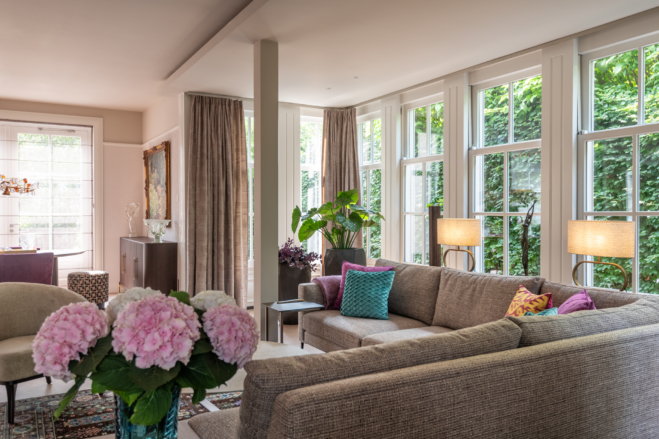 Wanneer we vragen welke ruimte nu het beste gelukt is, horen we dat het zitgedeelte in de erker nog altijd de fijnste plek is van het huis. “Dat was het vroeger al, en dat is het nu nog steeds. Want ondanks alle veranderingen, is dat prettige thuisgevoel gebleven.”